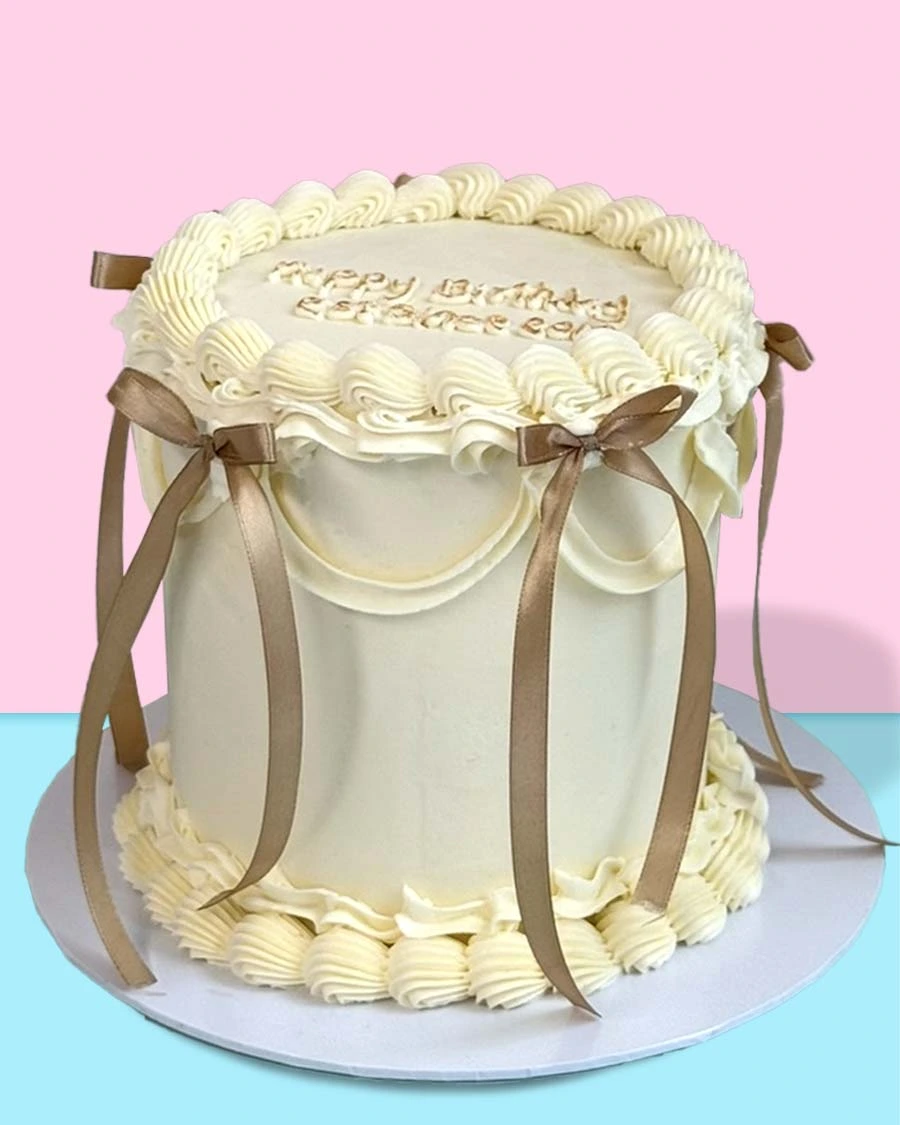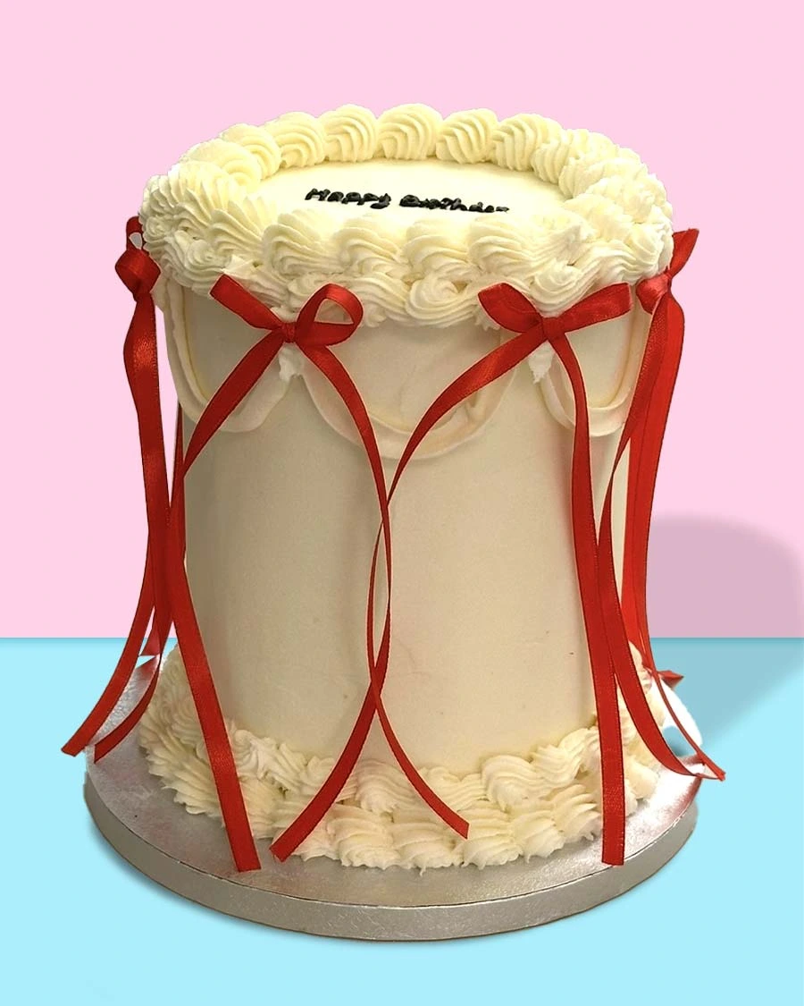 Choose your base colour, piping colour, bow colour, flavours, and finishing touches to create a bespoke draped cake, perfect for any special occasion.